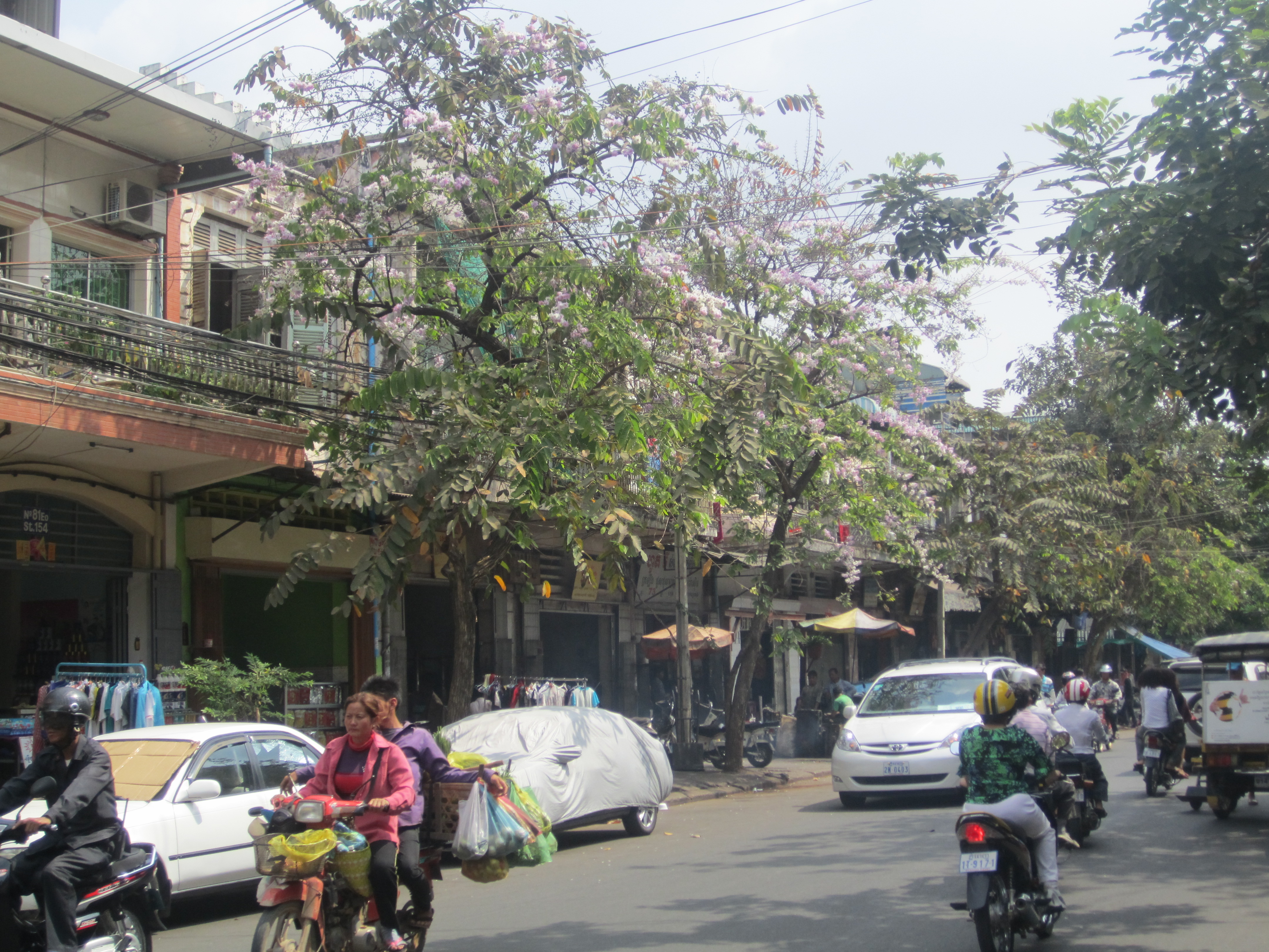 There are wide roads filled with motorbikes and tuk-tuks and more cars that I’d expected. There are smaller roads, lined with trees with soft pink flowers; there is laundry on the balconies. There are the umbrellas of the markets, the umbrellas of the monks—yellow above orange robes, a prayer in and of the themselves. There’s tourists and business men and beggars and children. There are a lot of children.