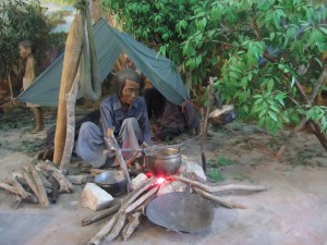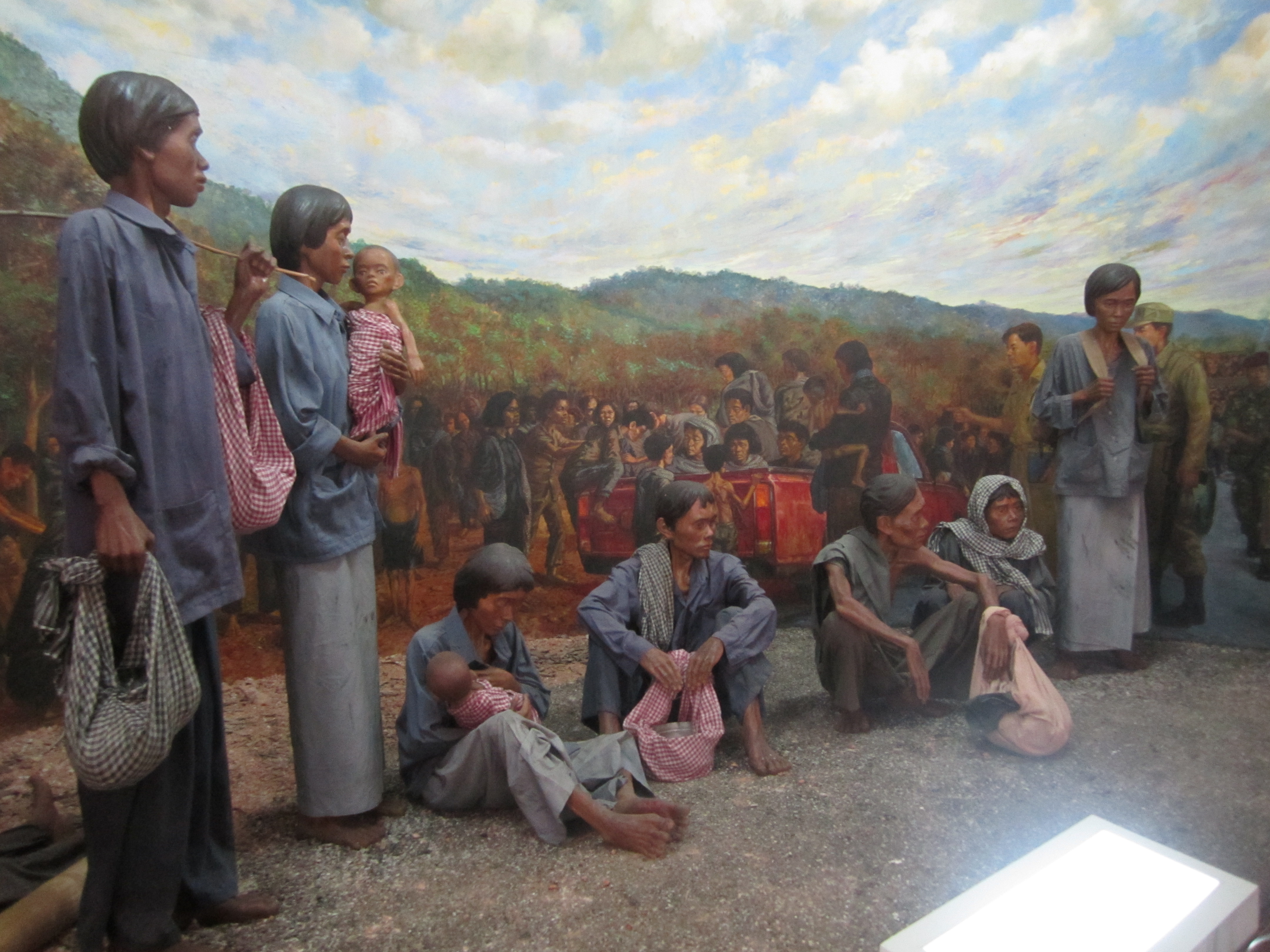 Wax Cambodian figures, their bodies worn and their faces contorted by grief, stood in varying poses of despair, before a painting of thick jungle, more faces and bodies coming through the trees. Other scenes depicted varying elements of camp life: cooking pots of rice, a white woman holding a stethoscope to the chest of a small wax infant. The dark Cambodian bodies grew plumper, more solid.
