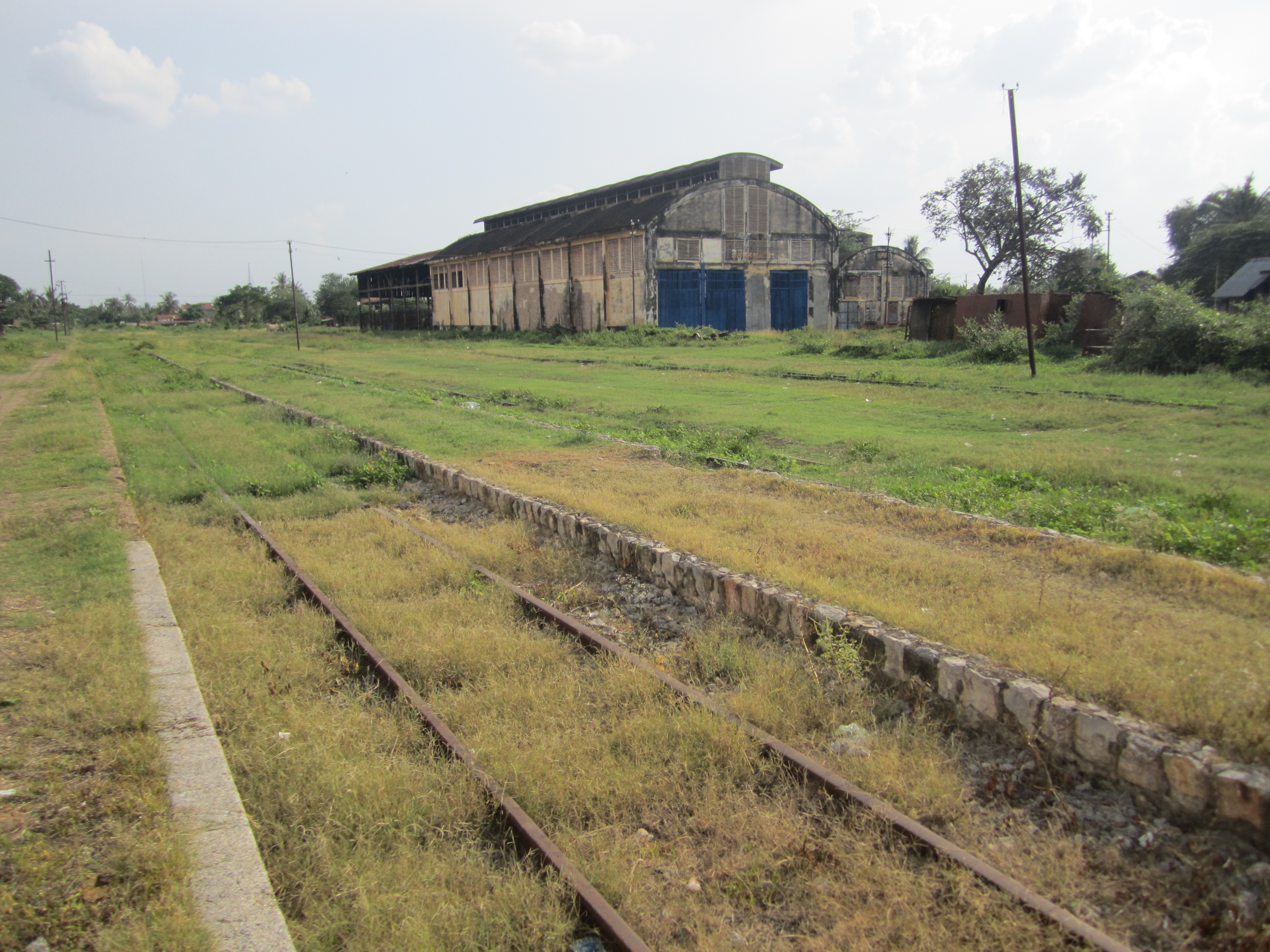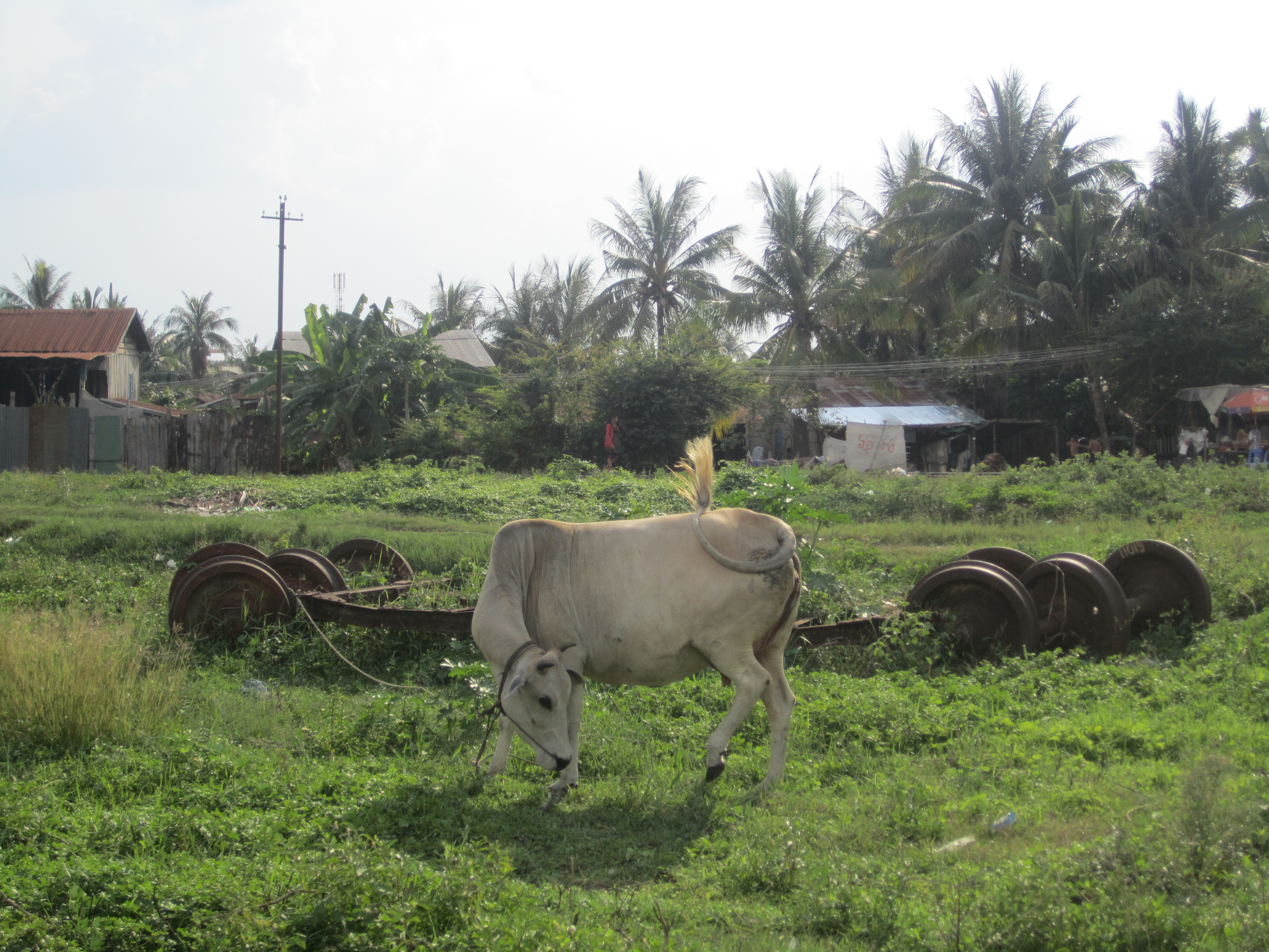 Like everything old in Cambodia, there’s nothing to stop you from poking around the lot of rusted engines, boxcar carcasses, tracks obscured by long grass and cow dung. People live there now, poor folks in thatched huts, where once the wind of the train might have blown them down, but now they only have to worry about the ghost trains passing—the wind, I suppose, doesn’t blow so hard from those. One man had set up a home in an old warehouse; I glimpsed him, through a crumble in the wall, bathing in his sarong.