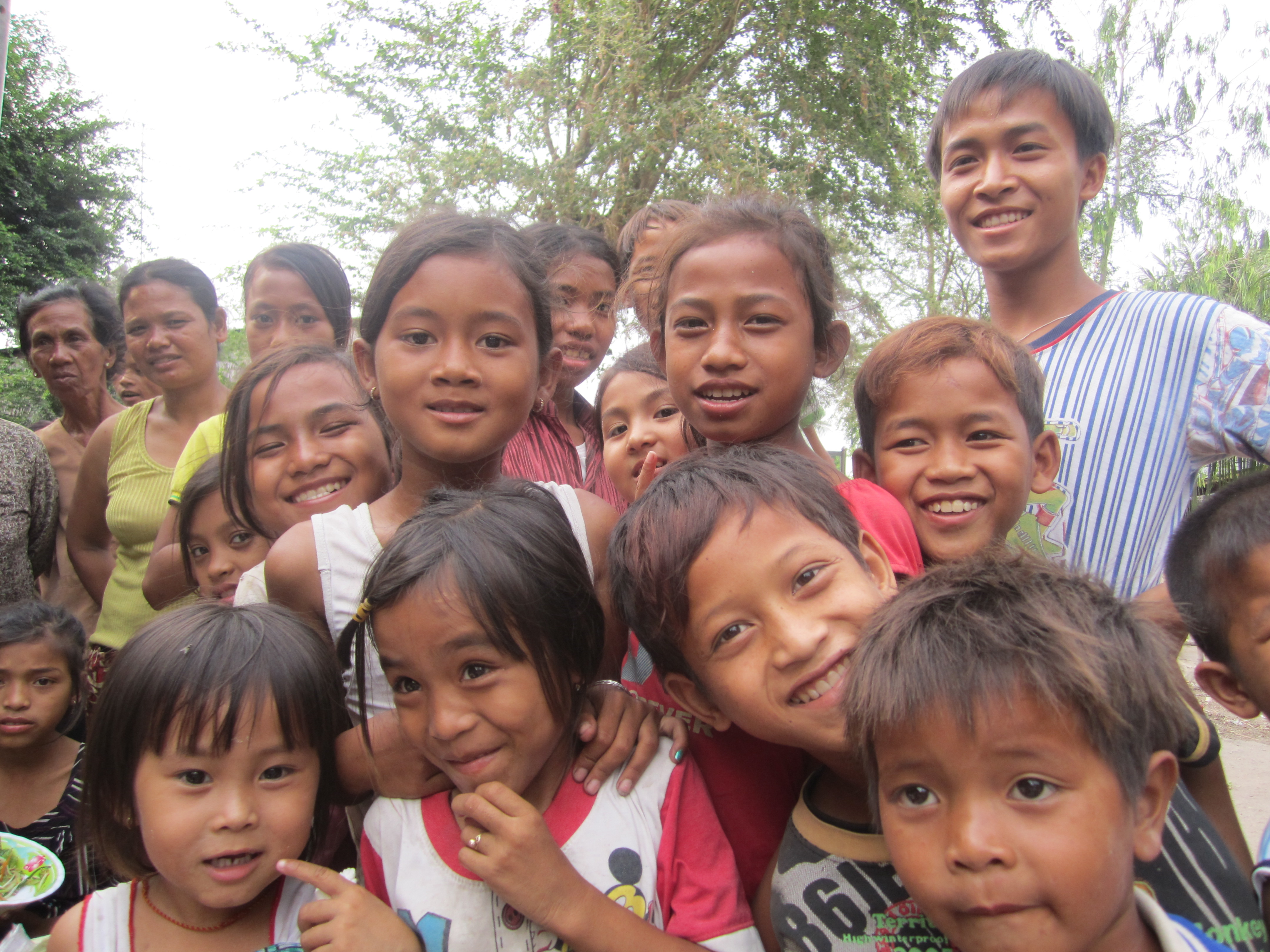 The crowd of children grew, big grins on small faces. Most were barefoot, their clothes thin and worn. They held their hands to their mouths, the girls chewed their hair, they smiled and smiled.