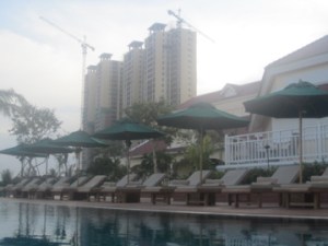 Which of course brings one to oneself. Because I was, after all, staying there. Yes, I was on assignment and thus not footing the bill. Yes, I was walking the half-mile of scorching-hot driveway to catch a tuk-tuk streetside, instead of paying the 300% surcharge from the hotel. And yes, I was using my $5/month wireless modem instead of paying for the hotel’s wifi (how you market yourself as a business-centric hotel and not have free wifi is beyond me…). But, if you drew the line in the sand—which you still can do, in the parts of the city without sidewalks—I was closer to all those business men than the people getting evicted by the lakeside.