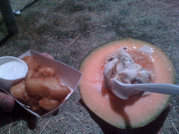 It was kinda like the squid and the tomatoes.There were also tons of Italian crew setting up, working on the lights and such—they were less chic, more working class, in their cargo pants. Then there were the security guards and the phalanx of confused-looking 18-year-old assistant cooks/mignonnes, and the caterers—and everyone chain-smoking, chain-smoking, like it was their job. (One of the girls at the arancini stand was smoking while she set up the deep fryer…)