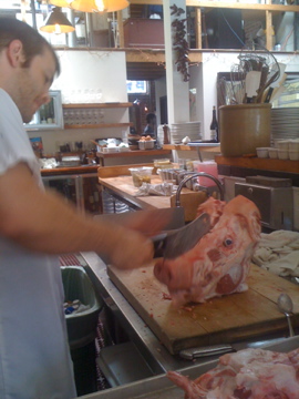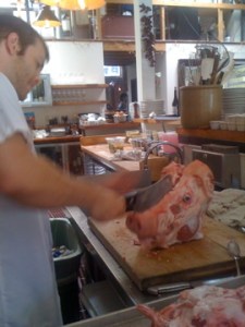 The theme of Milan’s festival was international chefs cooking Italian food versus Italian chefs cooking Italian food, and, being one of the better-known Neapolitan-style pizza restaurants in the US, Pizzaiolo (where I waited tables for the past year and a half) was invited to attend. My co-workers/chefs Jed Cote and Jason Loeb were flown across the globe, put up in a Sheraton, given a pizza oven and prep kitchen and about 100kg of squid, and sent to represent us.