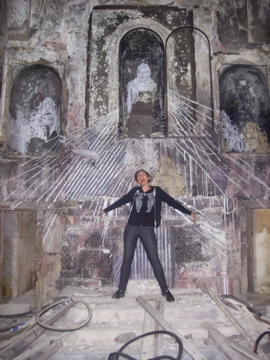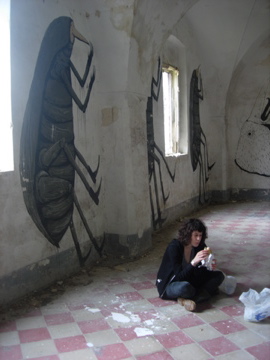 If you walk far enough down a dirt road outside of town; if you stalk through the weeds and sweatshirt-snagging thistles; if you scramble and heave and hoist yourself over a crumbly stone wall and follow the dent in the foliage that has become a path, you will find it: an abandoned monastery covered in art.