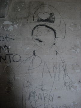 It’s exceedingly tender; it’s exceedingly unexpected that you would find this here: this vision of yourself in the walls of an abandoned monastery outside a small Italian town. As though every painting and stencil and shitty little tag were a message of love, saying, “Even in your wreckage, your falling-apart, your scars and wounds and ragged flesh—something can still love you enough to take the time, to do something beautiful.”