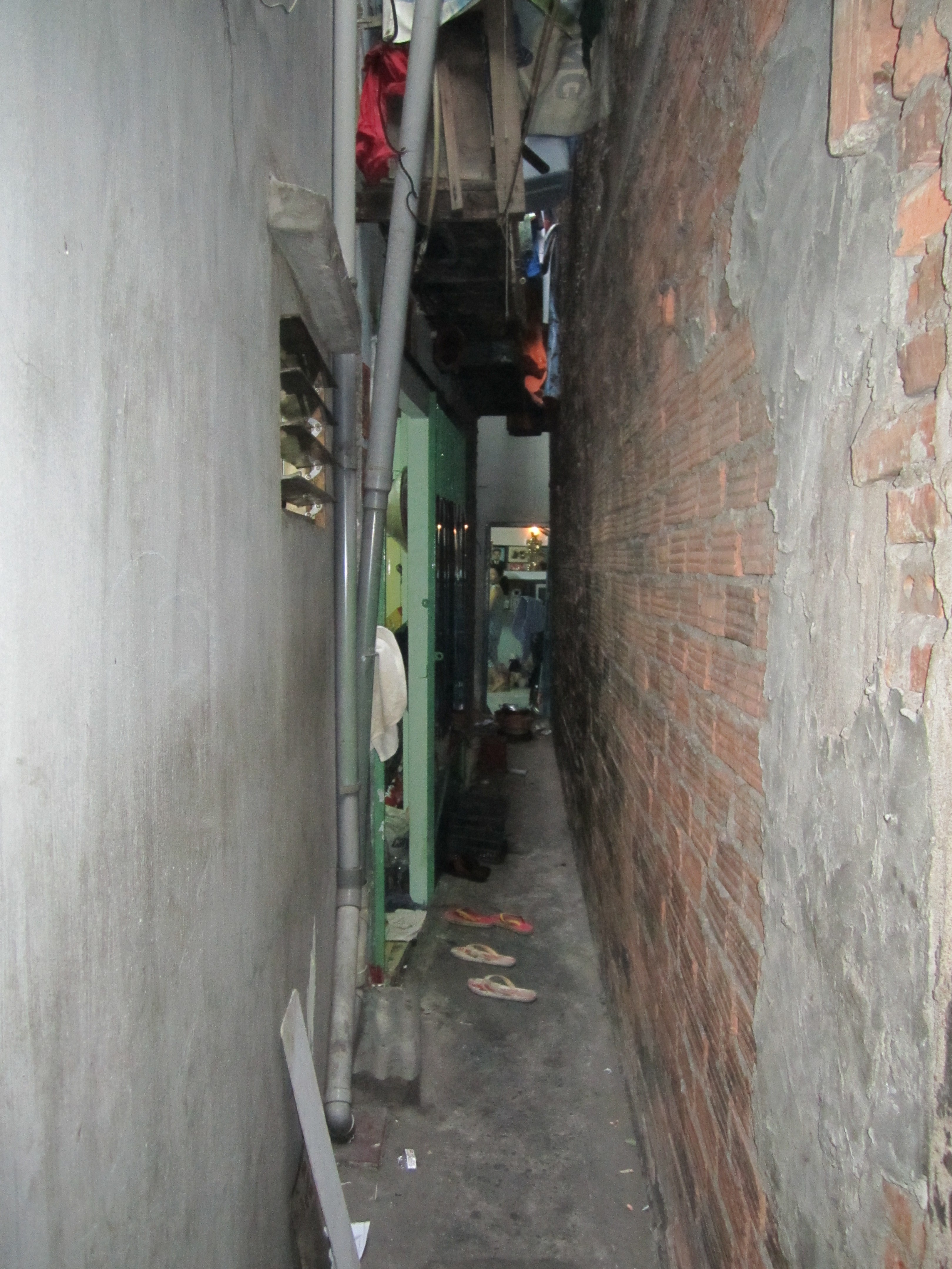 It’s cool and quiet inside—the buildings are high and the alley streets narrow. You pass a succession of doorways, more glimpses into the lives of the people inside, a flood of images: families huddled on the floor around a big cooker, eating rice; chickens clucking around; old men napping in hammocks; women lighting incense and raising it and waving it and tucking it in a crevice to smolder and smoke.