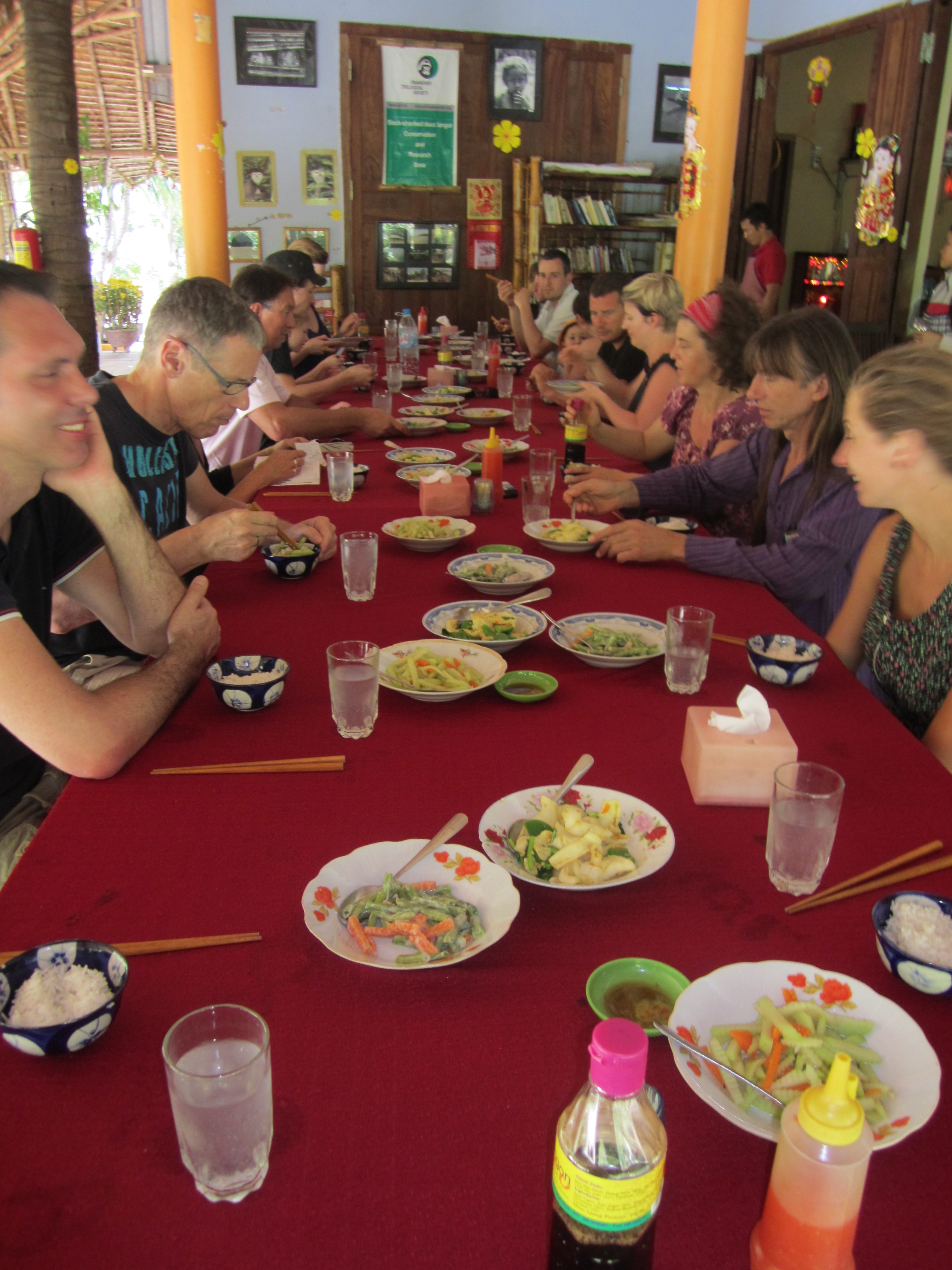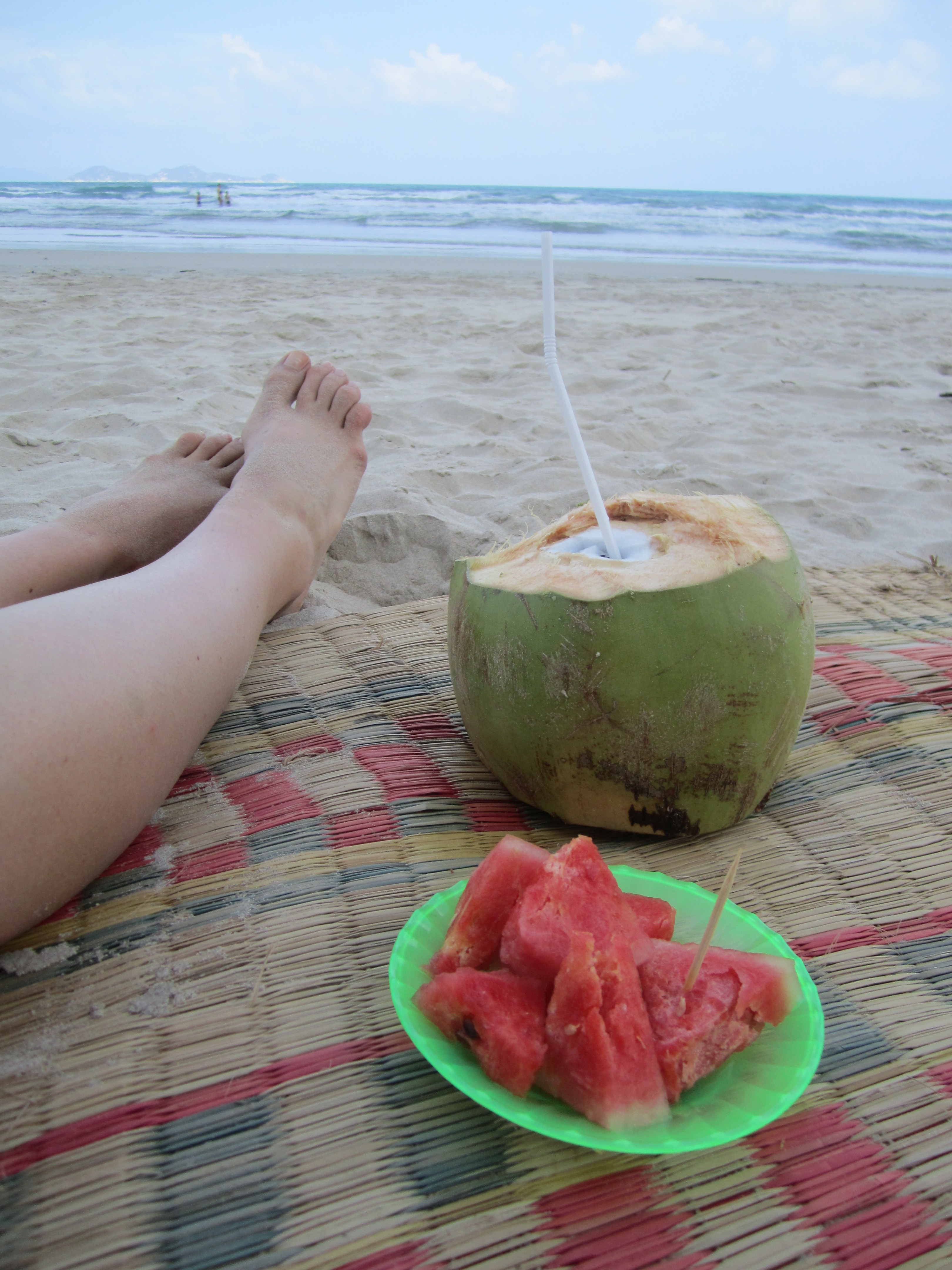 7. Take a taxi to the one cheap guesthouse in town, share it with Gredy, who’s got a half-melted face and you don’t ask why—with Mardi and Marin, who you remember from last year and who remember you too. Reception smells like stale smoke in the underground, and the cupboard’s got tea cups and condoms, and the staticy TV has an “I ❤ English" sticker on it. Astro-turf-style carpet runner, crash for a disco nap—bleary limbs back awake for the walk down the hill.