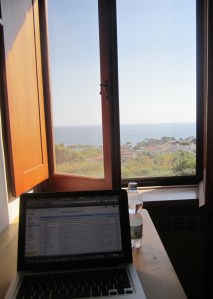 2. Wake up when your ears start popping, look out the window and see only mist—a kind of apocalyptic mist that’s mixed with pollution so you don’t know which is which—mist and trash and dogs sleeping in the median by the border control. Think of “The Road.” Hand the man your passport, remark how you thought you’d be the only navy one, have Robo reply, “The others are former Yugoslavia passports.”