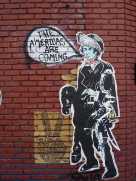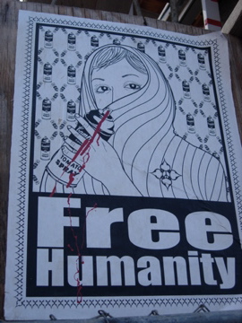 The kids are different here, in Kosovo, where you’ve come for a music festival called Cow Fest, or something like that. They speak Albanian, but a different type of Albanian, more slang, they tell you, looser and more wild. The kids look more European or American or something—hip in the way we like to be hip, sweaters and beards and slept-on hair—less like Tirana, where most of the kids are trying so hard to look Western they just fail—an approximation based on music videos and bad Hollywood movies, a hauty snootiness the girls assume, cheap shoes and too-much make-up, in the face of that failure. Say something about this, and they tell you, “Yes, yes”—how Kosovo’s been more connected to the Western world, how in Yugoslavia they could travel while Albania was on lock-down, how the music scene is better here but how the city’s smaller, less dynamic.Nod and drink your fake cappuccino. See an “Occupy Pristina” sticker, and open your purse, your notebook, dig out one the Obey stickers Greg gave you, metal drawer full. Peel off the back and put it up. Wonder if anyone will know what it means. Take a picture.